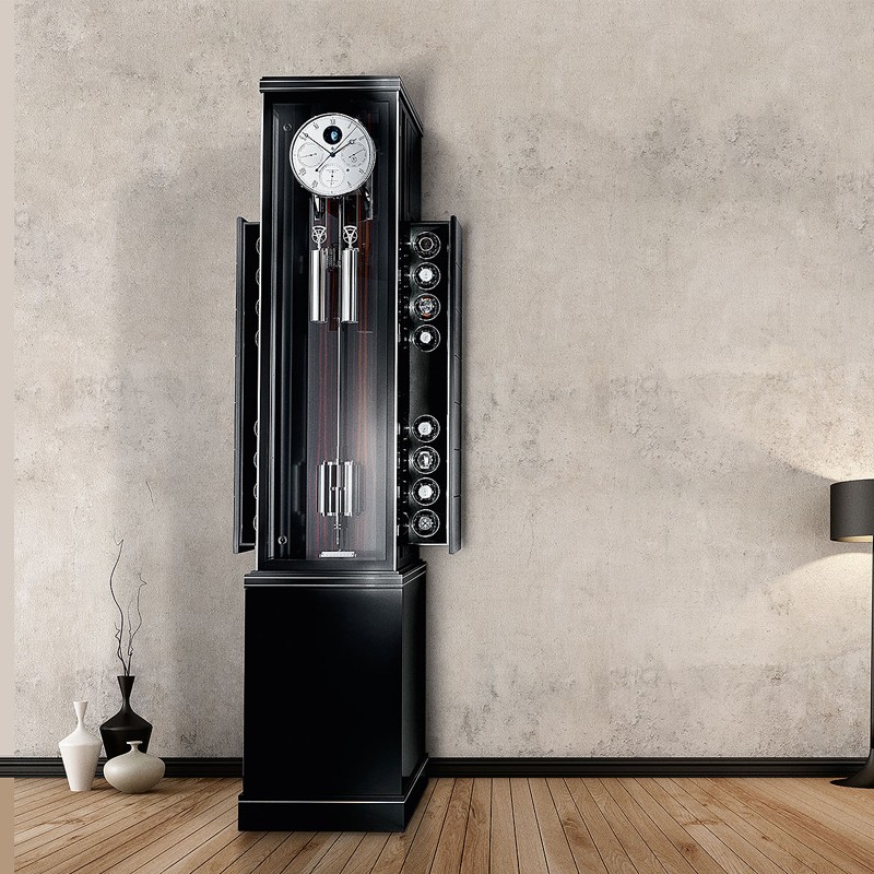 ロングケースクロックほど、時計製造の伝統を体現した時計は他にありません。本物の家具としての風格を備え、常に威厳と安らぎの象徴であり続けてきました。一秒一秒、丁寧に刻まれる音は、静寂と安心感をもたらし、慌ただしく過ぎていく日々の生活の中に、立ち止まる気持ちを促します。そのサイズゆえに、生活空間への最適な調和は特に重要です。