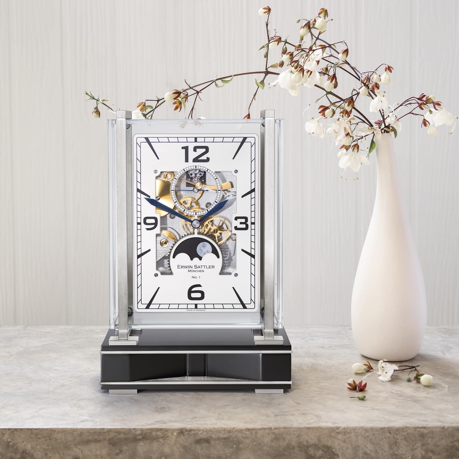 エルウィン・サトラーは、卓上時計の長い伝統を受け継いでいます。精緻な職人技と技術革新、そして現代的なデザインがサトラーの最前線にあり、常に工房の伝統的な品質基準を守り続けています。そしてそれらは、ただただ抗いがたい美しさです。ぜひご自身の目でお確かめください。