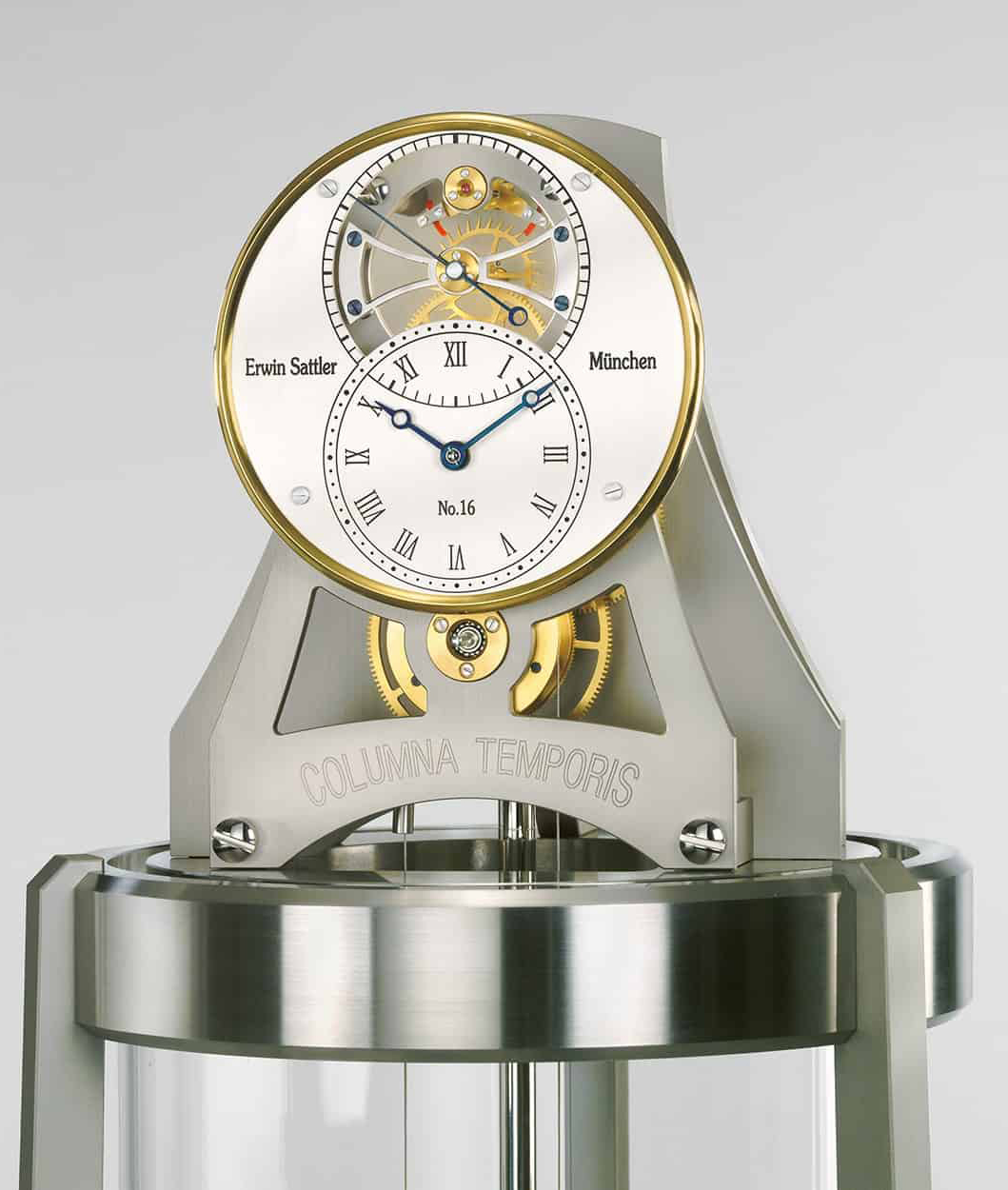 他に類を見ない時計。ステンレススチール、アフリカ産花崗岩、口吹きガラスといった時代を超越した高品質な素材を採用した「Columna Temporis」は、唯一無二の存在感を放っています。卓越したデザインと、エルウィン・サトラー工房の精密な時計製造技術が見事に融合し、まさに時代を超えた「時の柱」を体現しています。あらゆる空間に、技術的にも視覚的にもハイライトをもたらす特別な逸品です。