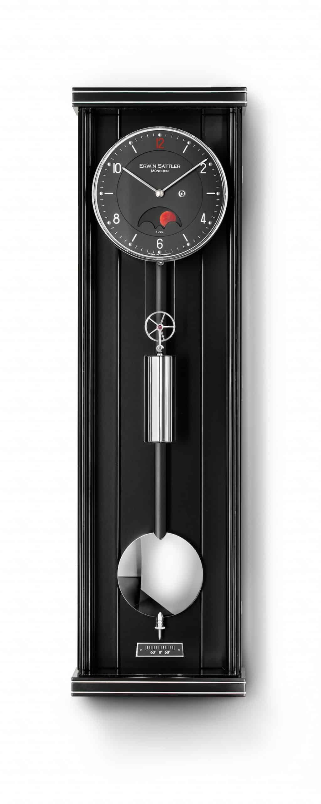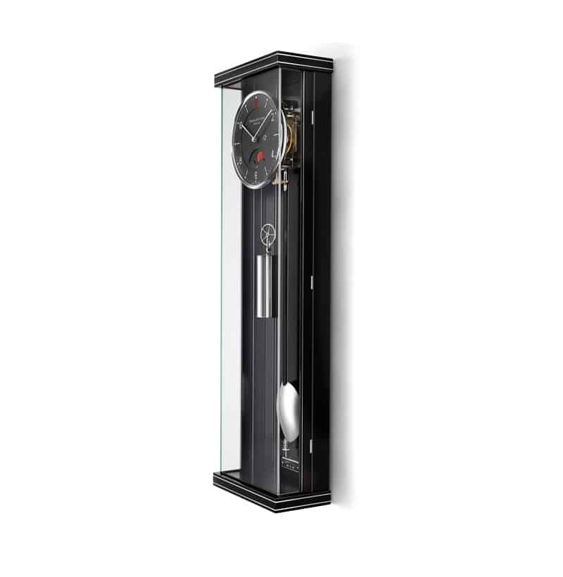 The OPUS PM 70 III has a power reserve of 8 days. The oscillator is a wooden rod pendulum with a solid turned brass lens, polished and nickel-plated.