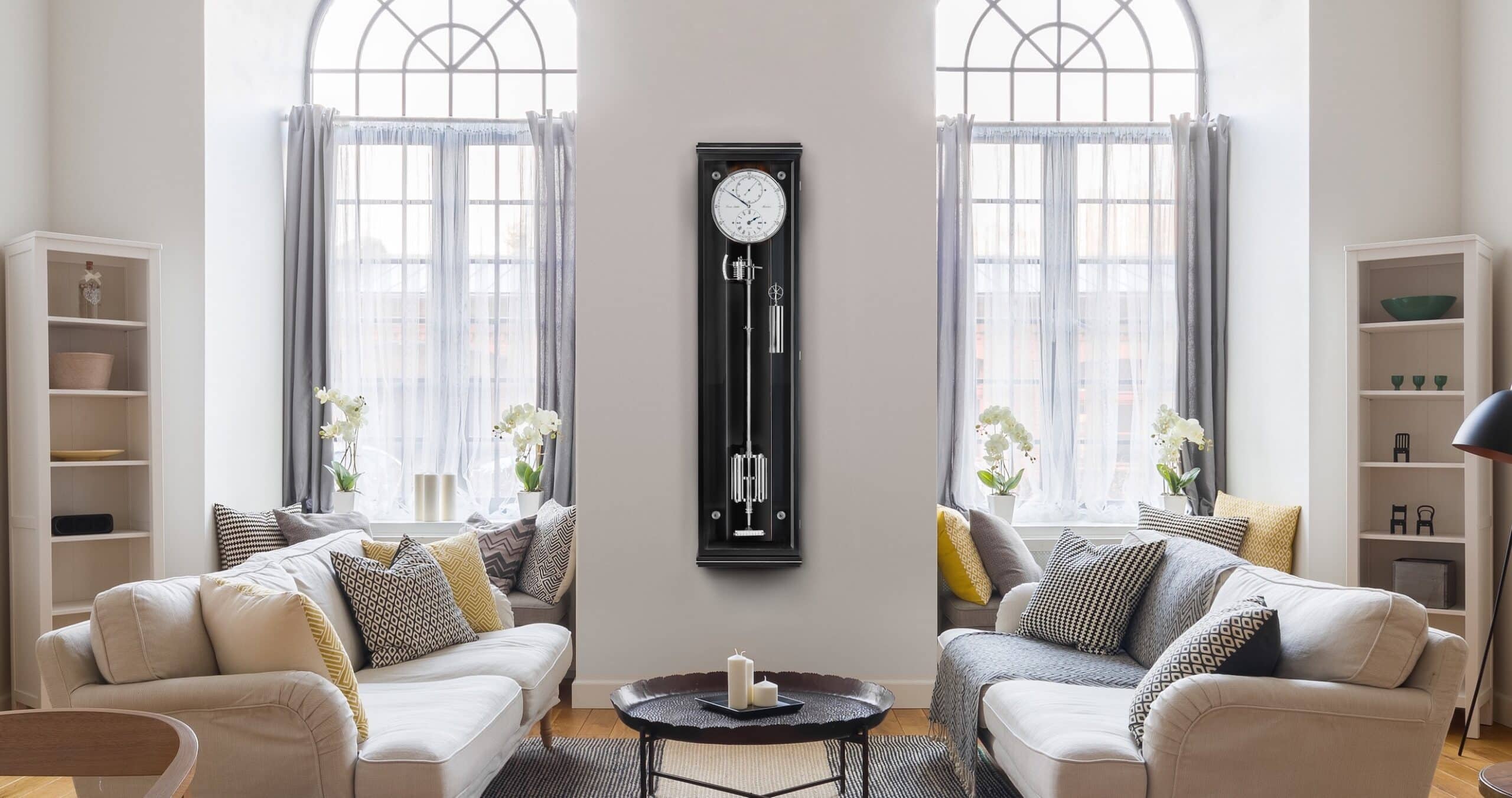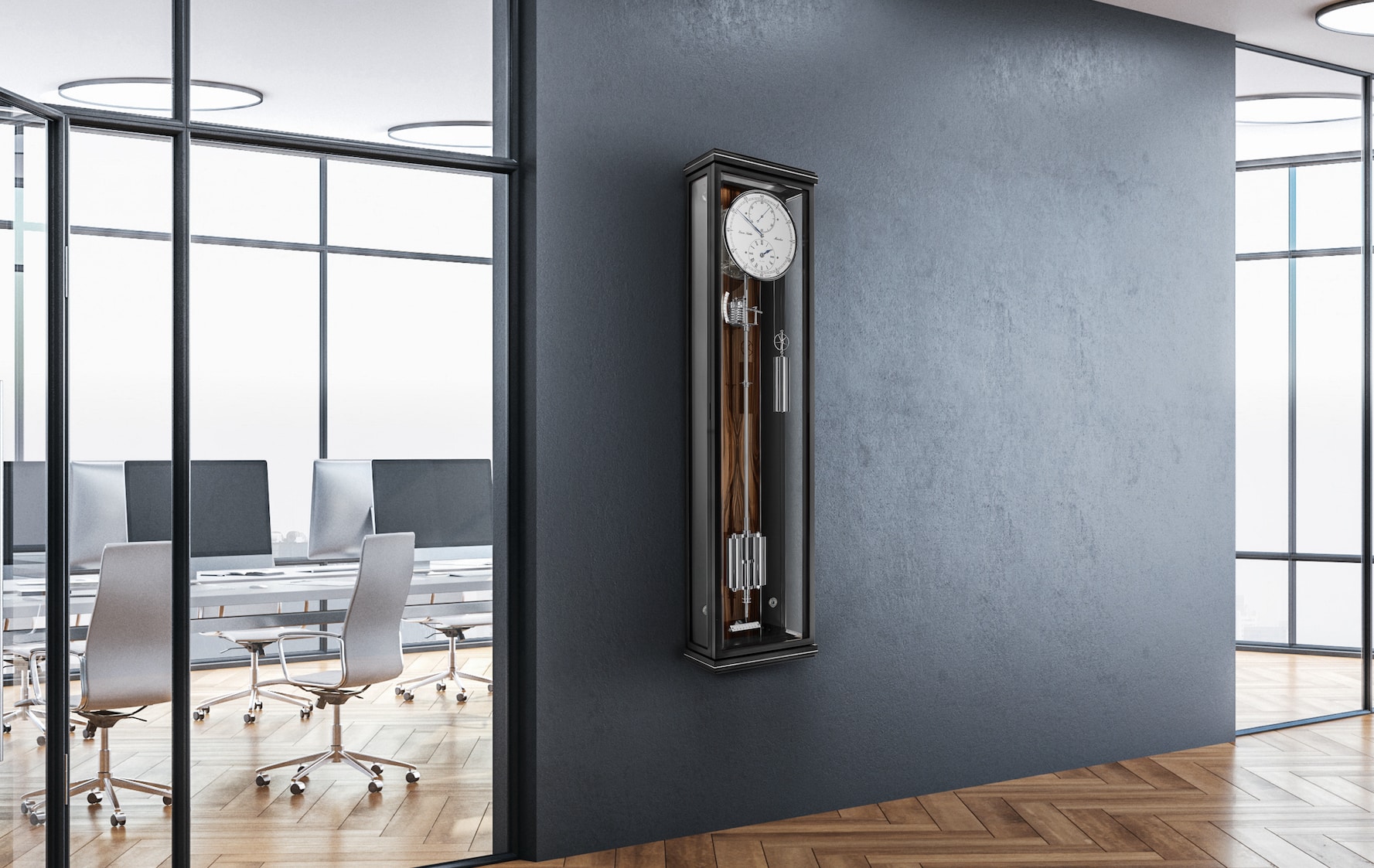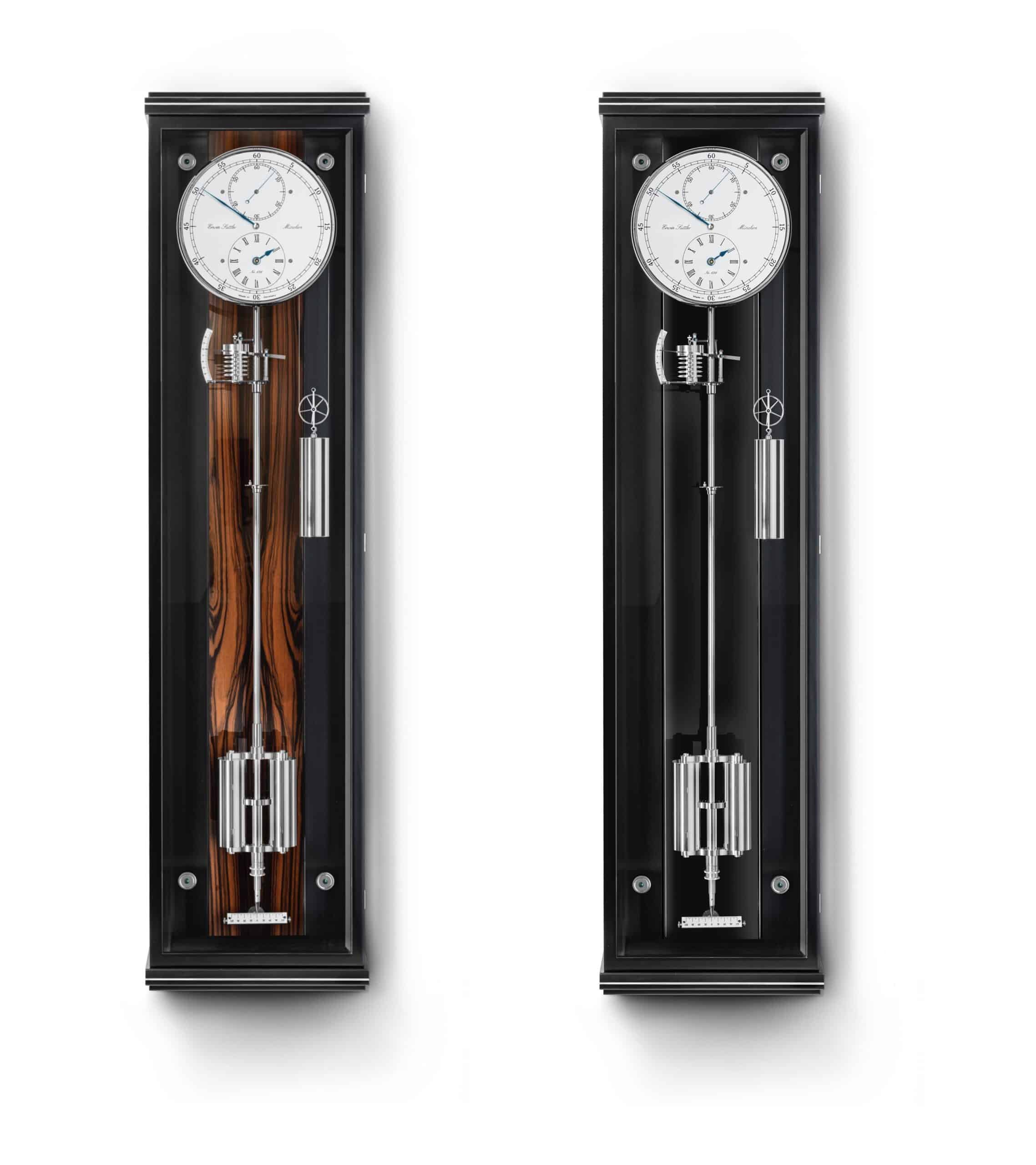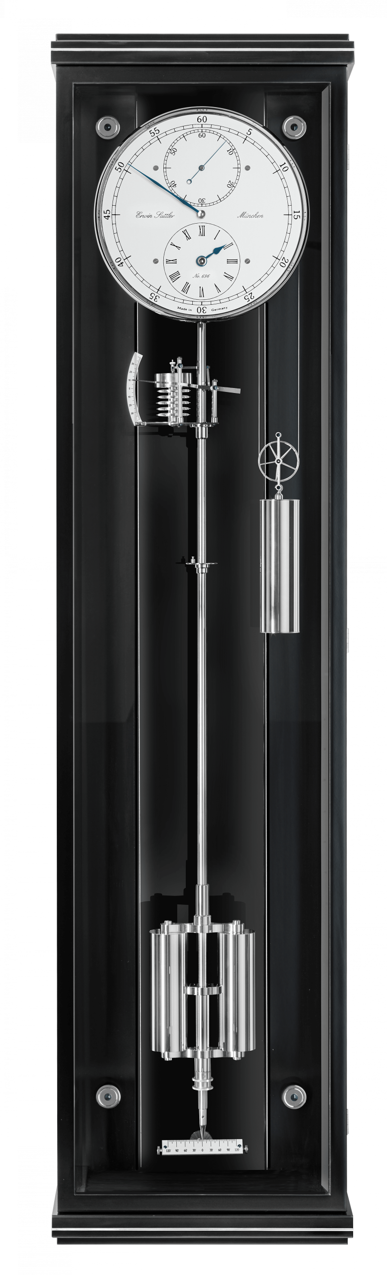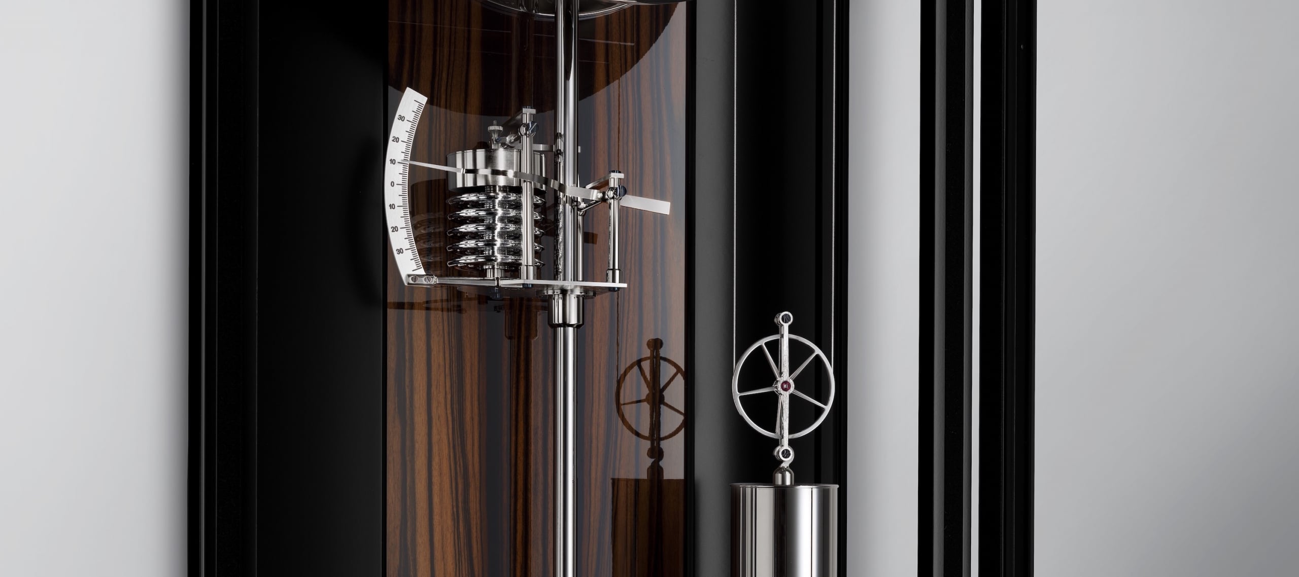 この振り子時計は極めて高精度な時計で、月差は最大1〜2秒です。側面に配された錘により、30日間のパワーリザーブを確保しています。精密な歯車と、すべての回転部品にボールベアリングまたは宝石ベアリングを使用することで、何世代にもわたる耐久性を実現しています。スーパーインバー製の振り子棒は、温度変化によって長さがわずかに変化しますが、この変化は精密に計算された自由振動の補正管によって相殺されます。3枚の面取りガラスからは、Classica Secunda 1985 Mの一部が魅惑的に覗けます。さらに上部の窓からは、ムーブメントを上から照らすことができます。時計のプレート、支柱、アンクル受け、歯車、ガイドローラー、シャトンは自社工房で少量生産され、フライス加工と旋盤加工が施されています。多くの部品は手作業で仕上げられ、金メッキが施されています。巻き上げクランク、微調整錘、その他の付属品は、ケース底部の収納部に収納されています。Classica Secunda 1985 Mは細部にまでこだわって製造され、機能的でありながら美しい作品となっており、長く愛され続ける逸品となっています。