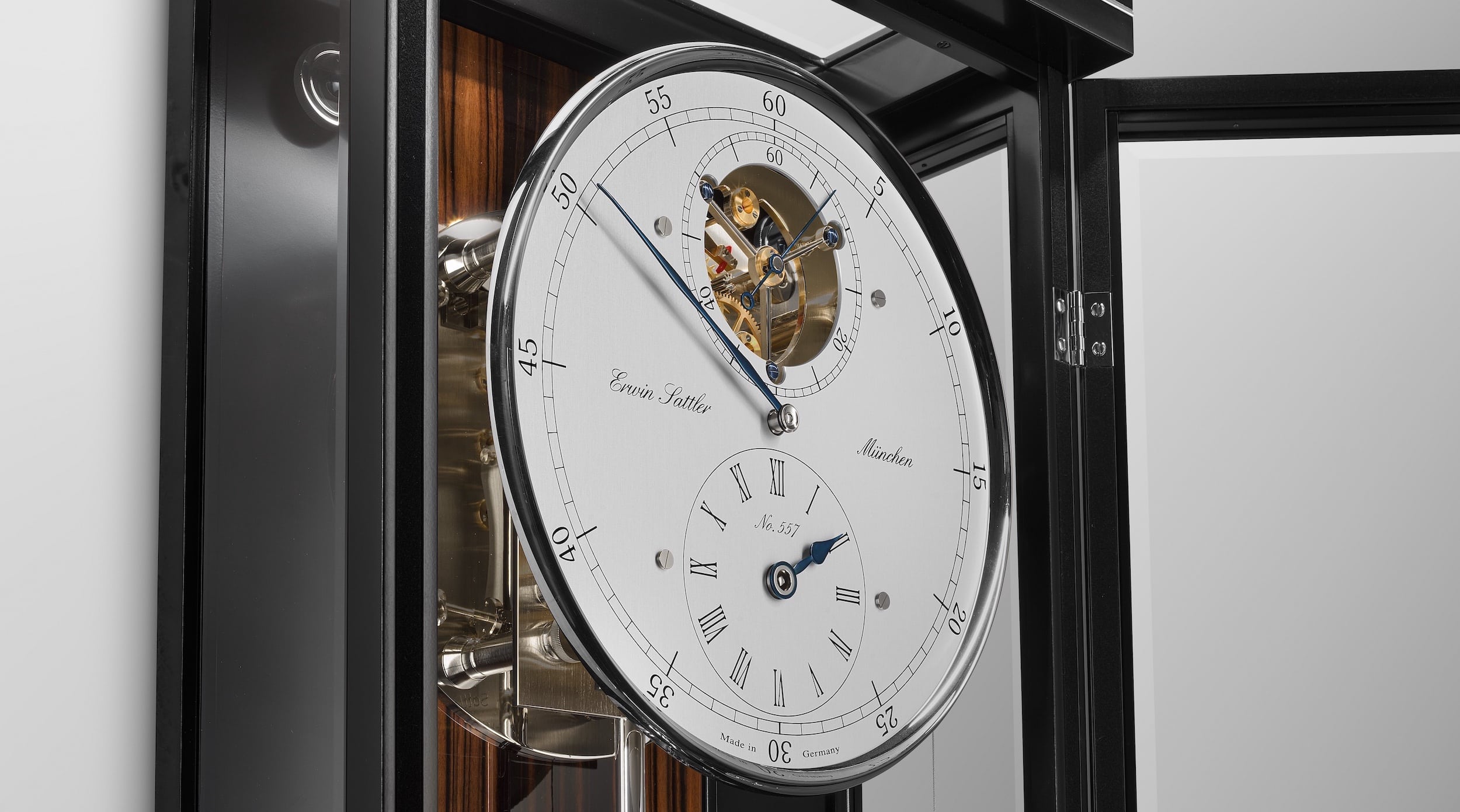 精密振り子時計の個々の部品すべてを製造するには、平均2年かかります。10点以下の少量生産で、厳選された職人が手作業で作り上げるこれらの時計は、伝統への深い絆と高品質を支える細部へのこだわりを如実に示しています。「Classica Secunda 1995 M」は、エルウィン・サトラー社が精密振り子時計の偉大な伝統をさらに発展させてきた、まさに輝かしい例と言えるでしょう。