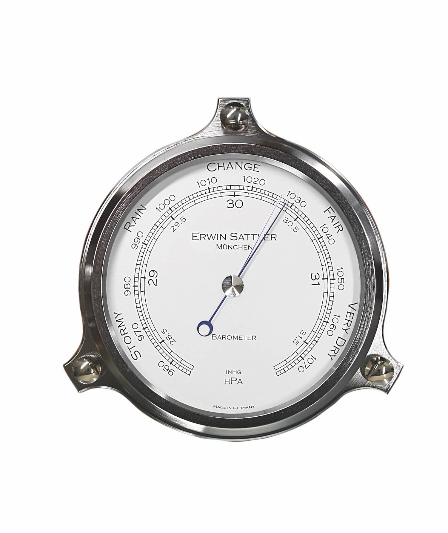 外洋では、気象に関する知識は時間と同じくらい重要な役割を果たします。だからこそ、エルウィン・サトラーは自社の「Navalis ship’s clock」に高品質で精巧にデザインされた追加計器を装備しています。これらは装飾的なだけでなく、その本来の目的を果たし、正確な計測結果で安全な航海を支えます。船上でも、自宅のリビングルームでも、航海計器はどこにいても存在感を放ちます。